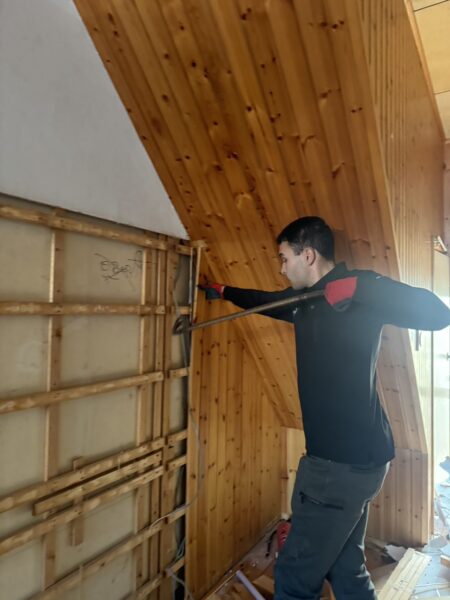 そして、既設であった余分な鉄をサンダーでカットし