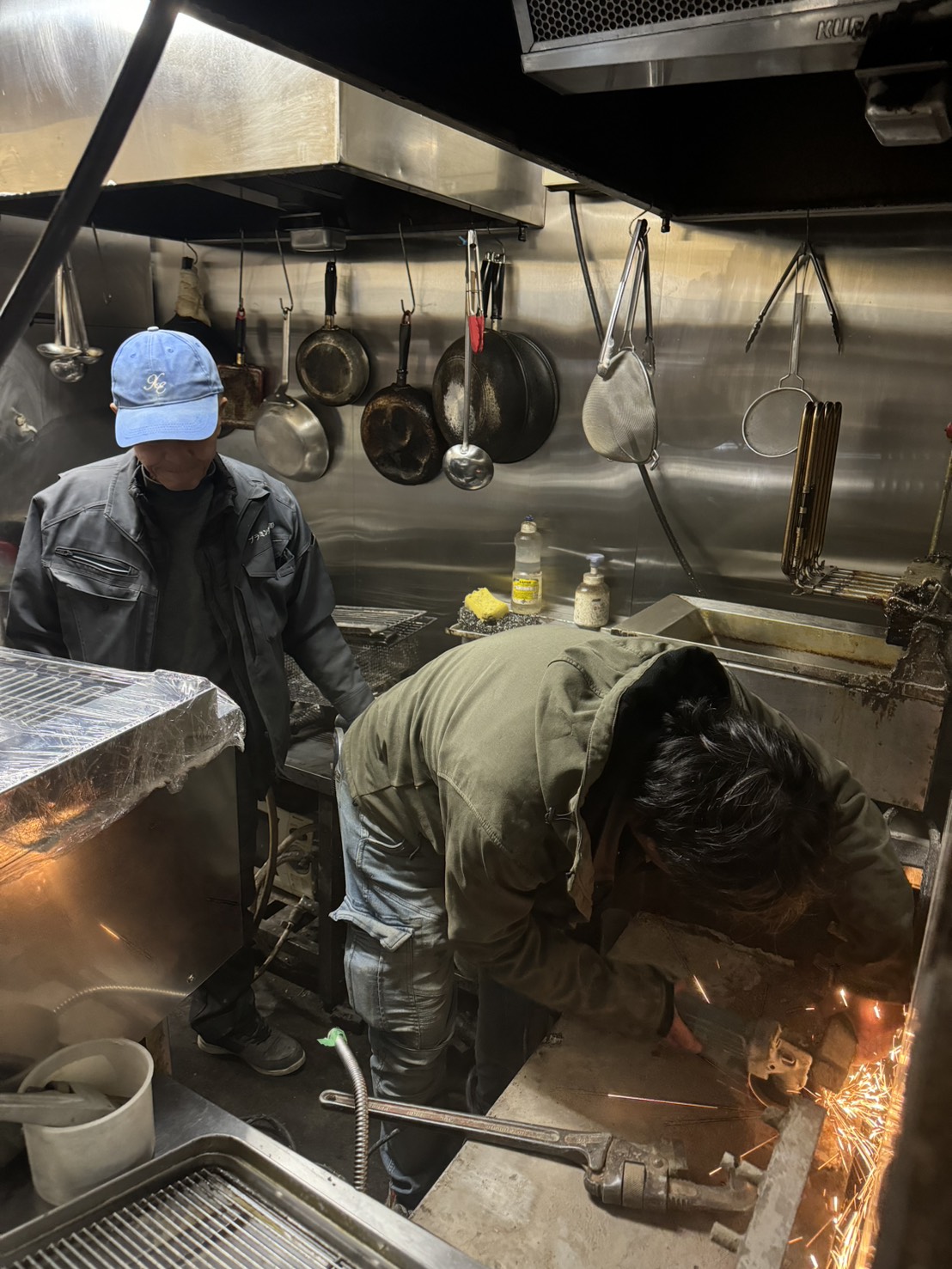 そして、既設であった余分な鉄をサンダーでカットし