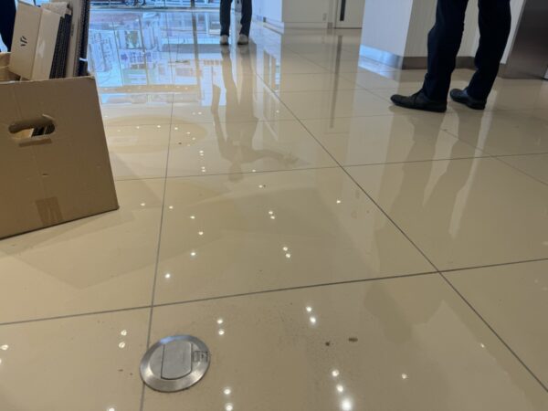 床にはフロアコンセントが雑多に配置されています。